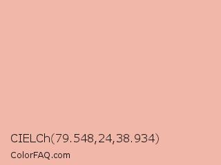 CIELCh 79.548,24,38.934 Color is a very light red color and the nearest color is Zinnwaldite #ebc2af. Hex code #f1b8aa and RGB value is rgb(241,184,170). In RGB color space, this color is composed of 95% red, 72% green, 67% blue, In CMYK color space, this color is composed of 0% cyan, 24% magenta, 29% yellow , 5% black , In HSL color space, this color has a hue angle of 12° , 72% saturation and 81% lightness.