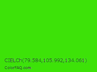 CIELCh 79.584,105.992,134.061 Color is a normal green color and the nearest color is Harlequin #3fff00. Hex code #3de308 and RGB value is rgb(61,227,8). In RGB color space, this color is composed of 24% red, 89% green, 3% blue, In CMYK color space, this color is composed of 73% cyan, 0% magenta, 96% yellow , 11% black , In HSL color space, this color has a hue angle of 105° , 93% saturation and 46% lightness.
