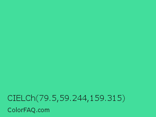 CIELCh 79.5,59.244,159.315 Color is a normal green color and the nearest color is Eucalyptus #44d7a8. Hex code #42de9c and RGB value is rgb(66,222,156). In RGB color space, this color is composed of 26% red, 87% green, 61% blue, In CMYK color space, this color is composed of 70% cyan, 0% magenta, 30% yellow , 13% black , In HSL color space, this color has a hue angle of 155° , 70% saturation and 56% lightness.