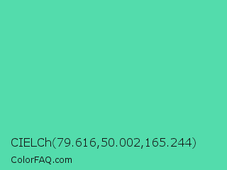 CIELCh 79.616,50.002,165.244 Color is a normal green color and the nearest color is Eucalyptus #44d7a8. Hex code #53dcac and RGB value is rgb(83,220,172). In RGB color space, this color is composed of 33% red, 86% green, 67% blue, In CMYK color space, this color is composed of 62% cyan, 0% magenta, 22% yellow , 14% black , In HSL color space, this color has a hue angle of 159° , 66% saturation and 59% lightness.
