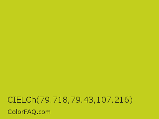 CIELCh 79.718,79.43,107.216 Color is a normal yellow color and the nearest color is Key Lime Pie #bfc921. Hex code #c2cf1d and RGB value is rgb(194,207,29). In RGB color space, this color is composed of 76% red, 81% green, 11% blue, In CMYK color space, this color is composed of 6% cyan, 0% magenta, 86% yellow , 19% black , In HSL color space, this color has a hue angle of 64° , 75% saturation and 46% lightness.