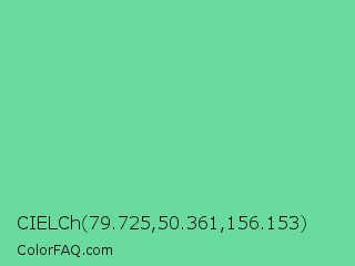 CIELCh 79.725,50.361,156.153 Color is a light green color and the nearest color is Medium Aquamarine #66ddaa. Hex code #6adb9e and RGB value is rgb(106,219,158). In RGB color space, this color is composed of 42% red, 86% green, 62% blue, In CMYK color space, this color is composed of 52% cyan, 0% magenta, 28% yellow , 14% black , In HSL color space, this color has a hue angle of 148° , 61% saturation and 64% lightness.