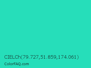 CIELCh 79.727,51.859,174.061 Color is a normal cyan color and the nearest color is Turquoise PWG #30d5c8. Hex code #26deba and RGB value is rgb(38,222,186). In RGB color space, this color is composed of 15% red, 87% green, 73% blue, In CMYK color space, this color is composed of 83% cyan, 0% magenta, 16% yellow , 13% black , In HSL color space, this color has a hue angle of 168° , 74% saturation and 51% lightness.