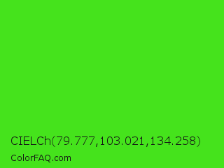 CIELCh 79.777,103.021,134.258 Color is a normal green color and the nearest color is Harlequin Green #46cb18. Hex code #45e31c and RGB value is rgb(69,227,28). In RGB color space, this color is composed of 27% red, 89% green, 11% blue, In CMYK color space, this color is composed of 70% cyan, 0% magenta, 88% yellow , 11% black , In HSL color space, this color has a hue angle of 108° , 78% saturation and 50% lightness.