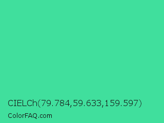 CIELCh 79.784,59.633,159.597 Color is a normal green color and the nearest color is Eucalyptus #44d7a8. Hex code #40df9d and RGB value is rgb(64,223,157). In RGB color space, this color is composed of 25% red, 87% green, 62% blue, In CMYK color space, this color is composed of 71% cyan, 0% magenta, 30% yellow , 13% black , In HSL color space, this color has a hue angle of 155° , 71% saturation and 56% lightness.