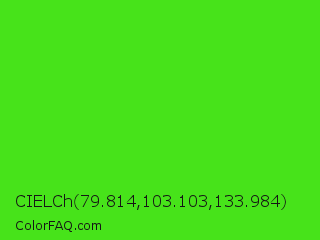 CIELCh 79.814,103.103,133.984 Color is a normal green color and the nearest color is Harlequin Green #46cb18. Hex code #47e31a and RGB value is rgb(71,227,26). In RGB color space, this color is composed of 28% red, 89% green, 10% blue, In CMYK color space, this color is composed of 69% cyan, 0% magenta, 89% yellow , 11% black , In HSL color space, this color has a hue angle of 107° , 79% saturation and 50% lightness.