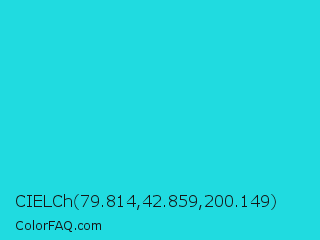 CIELCh 79.814,42.859,200.149 Color is a normal cyan color and the nearest color is Bright Turquoise #08e8de. Hex code #20dbe0 and RGB value is rgb(32,219,224). In RGB color space, this color is composed of 13% red, 86% green, 88% blue, In CMYK color space, this color is composed of 86% cyan, 2% magenta, 0% yellow , 12% black , In HSL color space, this color has a hue angle of 182° , 76% saturation and 50% lightness.