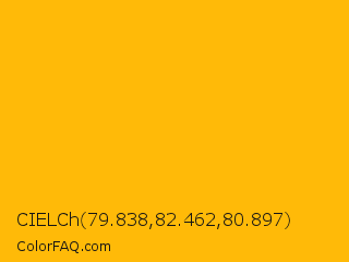 CIELCh 79.838,82.462,80.897 Color is a normal orange color and the nearest color is Selective Yellow #ffba00. Hex code #ffba08 and RGB value is rgb(255,186,8). In RGB color space, this color is composed of 100% red, 73% green, 3% blue, In CMYK color space, this color is composed of 0% cyan, 27% magenta, 97% yellow , 0% black , In HSL color space, this color has a hue angle of 43° , 100% saturation and 52% lightness.