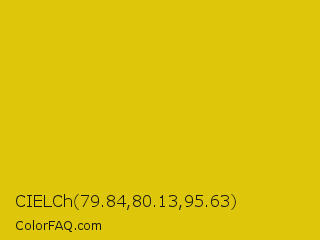 CIELCh 79.84,80.13,95.63 Color is a normal yellow color and the nearest color is Citrine #e4d00a. Hex code #dec70a and RGB value is rgb(222,199,10). In RGB color space, this color is composed of 87% red, 78% green, 4% blue, In CMYK color space, this color is composed of 0% cyan, 10% magenta, 95% yellow , 13% black , In HSL color space, this color has a hue angle of 53° , 91% saturation and 45% lightness.