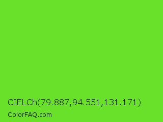 CIELCh 79.887,94.551,131.171 Color is a normal green color and the nearest color is Lima #76bd17. Hex code #69e02a and RGB value is rgb(105,224,42). In RGB color space, this color is composed of 41% red, 88% green, 16% blue, In CMYK color space, this color is composed of 53% cyan, 0% magenta, 81% yellow , 12% black , In HSL color space, this color has a hue angle of 99° , 75% saturation and 52% lightness.
