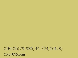 CIELCh 79.935,44.724,101.8 Color is a light yellow color and the nearest color is Chenin #dfcd6f. Hex code #d1c973 and RGB value is rgb(209,201,115). In RGB color space, this color is composed of 82% red, 79% green, 45% blue, In CMYK color space, this color is composed of 0% cyan, 4% magenta, 45% yellow , 18% black , In HSL color space, this color has a hue angle of 55° , 51% saturation and 64% lightness.