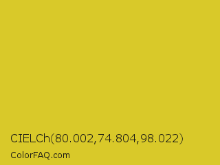 CIELCh 80.002,74.804,98.022 Color is a normal yellow color and the nearest color is Sunflower #e4d422. Hex code #d9c929 and RGB value is rgb(217,201,41). In RGB color space, this color is composed of 85% red, 79% green, 16% blue, In CMYK color space, this color is composed of 0% cyan, 7% magenta, 81% yellow , 15% black , In HSL color space, this color has a hue angle of 55° , 70% saturation and 51% lightness.