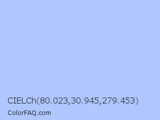 CIELCh 80.023,30.945,279.453 Color is a very light blue color and the nearest color is Perano #a9bef2. Hex code #afc6ff and RGB value is rgb(175,198,255). In RGB color space, this color is composed of 69% red, 78% green, 100% blue, In CMYK color space, this color is composed of 31% cyan, 22% magenta, 0% yellow , 0% black , In HSL color space, this color has a hue angle of 223° , 100% saturation and 84% lightness.