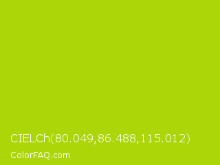 CIELCh 80.049,86.488,115.012 Color is a normal lime color and the nearest color is Vivid Lime Green #a6d608. Hex code #abd608 and RGB value is rgb(171,214,8). In RGB color space, this color is composed of 67% red, 84% green, 3% blue, In CMYK color space, this color is composed of 20% cyan, 0% magenta, 96% yellow , 16% black , In HSL color space, this color has a hue angle of 73° , 93% saturation and 44% lightness.