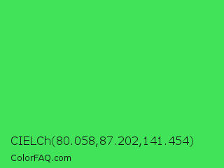CIELCh 80.058,87.202,141.454 Color is a normal green color and the nearest color is UFO Green #3cd070. Hex code #41e359 and RGB value is rgb(65,227,89). In RGB color space, this color is composed of 25% red, 89% green, 35% blue, In CMYK color space, this color is composed of 71% cyan, 0% magenta, 61% yellow , 11% black , In HSL color space, this color has a hue angle of 129° , 74% saturation and 57% lightness.