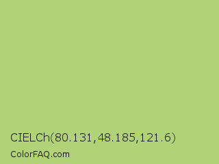 CIELCh 80.131,48.185,121.6 Color is a light green color and the nearest color is Wild Willow #b9c46a. Hex code #b2d278 and RGB value is rgb(178,210,120). In RGB color space, this color is composed of 70% red, 82% green, 47% blue, In CMYK color space, this color is composed of 15% cyan, 0% magenta, 43% yellow , 18% black , In HSL color space, this color has a hue angle of 81° , 50% saturation and 65% lightness.