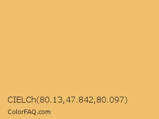 CIELCh 80.13,47.842,80.097 Color is a light orange color and the nearest color is Rob Roy #eac674. Hex code #f0bf6e and RGB value is rgb(240,191,110). In RGB color space, this color is composed of 94% red, 75% green, 43% blue, In CMYK color space, this color is composed of 0% cyan, 20% magenta, 54% yellow , 6% black , In HSL color space, this color has a hue angle of 37° , 81% saturation and 69% lightness.