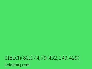 CIELCh 80.174,79.452,143.429 Color is a normal green color and the nearest color is UFO Green #3cd070. Hex code #4de269 and RGB value is rgb(77,226,105). In RGB color space, this color is composed of 30% red, 89% green, 41% blue, In CMYK color space, this color is composed of 66% cyan, 0% magenta, 54% yellow , 11% black , In HSL color space, this color has a hue angle of 131° , 72% saturation and 59% lightness.