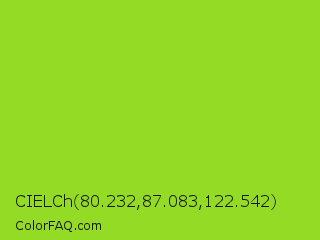 CIELCh 80.232,87.083,122.542 Color is a normal green color and the nearest color is Atlantis #97cd2d. Hex code #94db25 and RGB value is rgb(148,219,37). In RGB color space, this color is composed of 58% red, 86% green, 15% blue, In CMYK color space, this color is composed of 32% cyan, 0% magenta, 83% yellow , 14% black , In HSL color space, this color has a hue angle of 83° , 72% saturation and 50% lightness.