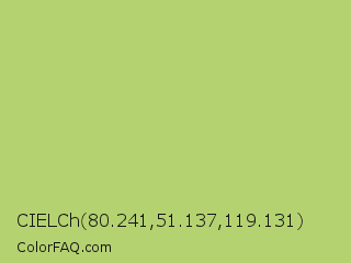 CIELCh 80.241,51.137,119.131 Color is a light lime color and the nearest color is Wild Willow #b9c46a. Hex code #b5d271 and RGB value is rgb(181,210,113). In RGB color space, this color is composed of 71% red, 82% green, 44% blue, In CMYK color space, this color is composed of 14% cyan, 0% magenta, 46% yellow , 18% black , In HSL color space, this color has a hue angle of 78° , 52% saturation and 63% lightness.