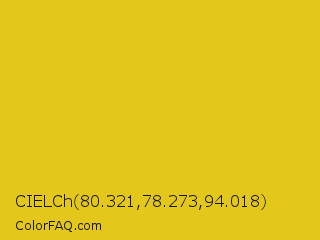 CIELCh 80.321,78.273,94.018 Color is a normal yellow color and the nearest color is Sunflower #e4d422. Hex code #e3c71a and RGB value is rgb(227,199,26). In RGB color space, this color is composed of 89% red, 78% green, 10% blue, In CMYK color space, this color is composed of 0% cyan, 12% magenta, 89% yellow , 11% black , In HSL color space, this color has a hue angle of 52° , 79% saturation and 50% lightness.