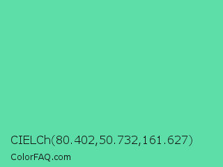CIELCh 80.402,50.732,161.627 Color is a light green color and the nearest color is Medium Aquamarine #66ddaa. Hex code #5ddea8 and RGB value is rgb(93,222,168). In RGB color space, this color is composed of 36% red, 87% green, 66% blue, In CMYK color space, this color is composed of 58% cyan, 0% magenta, 24% yellow , 13% black , In HSL color space, this color has a hue angle of 155° , 66% saturation and 62% lightness.