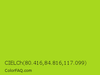 CIELCh 80.416,84.816,117.099 Color is a normal lime color and the nearest color is Inch Worm #b0e313. Hex code #a7d81e and RGB value is rgb(167,216,30). In RGB color space, this color is composed of 65% red, 85% green, 12% blue, In CMYK color space, this color is composed of 23% cyan, 0% magenta, 86% yellow , 15% black , In HSL color space, this color has a hue angle of 76° , 76% saturation and 48% lightness.