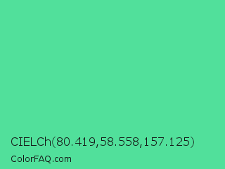 CIELCh 80.419,58.558,157.125 Color is a normal green color and the nearest color is Eucalyptus #44d7a8. Hex code #51e09b and RGB value is rgb(81,224,155). In RGB color space, this color is composed of 32% red, 88% green, 61% blue, In CMYK color space, this color is composed of 64% cyan, 0% magenta, 31% yellow , 12% black , In HSL color space, this color has a hue angle of 151° , 70% saturation and 60% lightness.