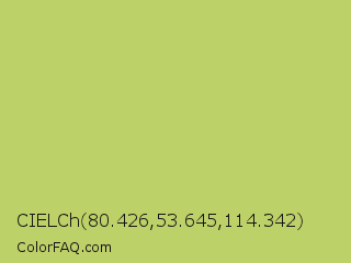 CIELCh 80.426,53.645,114.342 Color is a light lime color and the nearest color is Wild Willow #b9c46a. Hex code #bdd169 and RGB value is rgb(189,209,105). In RGB color space, this color is composed of 74% red, 82% green, 41% blue, In CMYK color space, this color is composed of 10% cyan, 0% magenta, 50% yellow , 18% black , In HSL color space, this color has a hue angle of 72° , 53% saturation and 62% lightness.