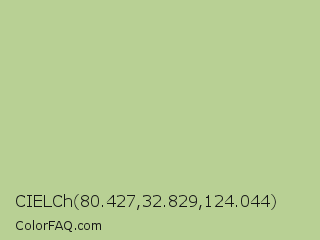 CIELCh 80.427,32.829,124.044 Color is a light green color and the nearest color is Pine Glade #c7cd90. Hex code #b8d094 and RGB value is rgb(184,208,148). In RGB color space, this color is composed of 72% red, 82% green, 58% blue, In CMYK color space, this color is composed of 12% cyan, 0% magenta, 29% yellow , 18% black , In HSL color space, this color has a hue angle of 84° , 39% saturation and 70% lightness.