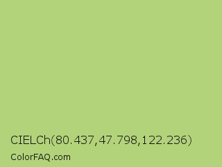 CIELCh 80.437,47.798,122.236 Color is a light green color and the nearest color is Wild Willow #b9c46a. Hex code #b2d37a and RGB value is rgb(178,211,122). In RGB color space, this color is composed of 70% red, 83% green, 48% blue, In CMYK color space, this color is composed of 16% cyan, 0% magenta, 42% yellow , 17% black , In HSL color space, this color has a hue angle of 82° , 50% saturation and 65% lightness.