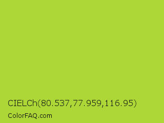 CIELCh 80.537,77.959,116.95 Color is a normal lime color and the nearest color is Android Green #a4c639. Hex code #acd736 and RGB value is rgb(172,215,54). In RGB color space, this color is composed of 67% red, 84% green, 21% blue, In CMYK color space, this color is composed of 20% cyan, 0% magenta, 75% yellow , 16% black , In HSL color space, this color has a hue angle of 76° , 67% saturation and 53% lightness.