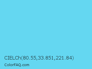 CIELCh 80.55,33.851,221.84 Color is a light cyan color and the nearest color is Turquoise Blue #6cdae7. Hex code #64d7f1 and RGB value is rgb(100,215,241). In RGB color space, this color is composed of 39% red, 84% green, 95% blue, In CMYK color space, this color is composed of 59% cyan, 11% magenta, 0% yellow , 5% black , In HSL color space, this color has a hue angle of 191° , 83% saturation and 67% lightness.