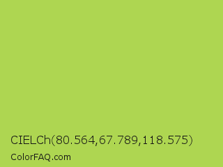 CIELCh 80.564,67.789,118.575 Color is a normal lime color and the nearest color is Conifer #acdd4d. Hex code #aed651 and RGB value is rgb(174,214,81). In RGB color space, this color is composed of 68% red, 84% green, 32% blue, In CMYK color space, this color is composed of 19% cyan, 0% magenta, 62% yellow , 16% black , In HSL color space, this color has a hue angle of 78° , 62% saturation and 58% lightness.