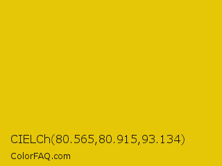 CIELCh 80.565,80.915,93.134 Color is a normal yellow color and the nearest color is Corn #e7bf05. Hex code #e6c708 and RGB value is rgb(230,199,8). In RGB color space, this color is composed of 90% red, 78% green, 3% blue, In CMYK color space, this color is composed of 0% cyan, 13% magenta, 97% yellow , 10% black , In HSL color space, this color has a hue angle of 52° , 93% saturation and 47% lightness.
