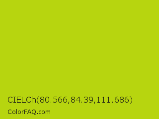 CIELCh 80.566,84.39,111.686 Color is a normal yellow color and the nearest color is Rio Grande #bbd009. Hex code #b7d50f and RGB value is rgb(183,213,15). In RGB color space, this color is composed of 72% red, 84% green, 6% blue, In CMYK color space, this color is composed of 14% cyan, 0% magenta, 93% yellow , 16% black , In HSL color space, this color has a hue angle of 69° , 87% saturation and 45% lightness.