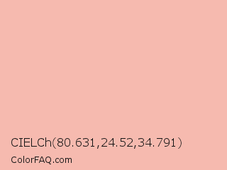CIELCh 80.631,24.52,34.791 Color is a very light red color and the nearest color is Melon Crayola #febaad. Hex code #f6baaf and RGB value is rgb(246,186,175). In RGB color space, this color is composed of 96% red, 73% green, 69% blue, In CMYK color space, this color is composed of 0% cyan, 24% magenta, 29% yellow , 4% black , In HSL color space, this color has a hue angle of 9° , 80% saturation and 83% lightness.