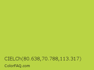 CIELCh 80.638,70.788,113.317 Color is a normal lime color and the nearest color is Conifer #acdd4d. Hex code #b9d444 and RGB value is rgb(185,212,68). In RGB color space, this color is composed of 73% red, 83% green, 27% blue, In CMYK color space, this color is composed of 13% cyan, 0% magenta, 68% yellow , 17% black , In HSL color space, this color has a hue angle of 71° , 63% saturation and 55% lightness.