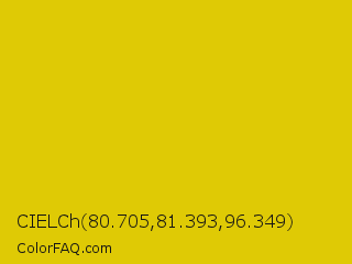 CIELCh 80.705,81.393,96.349 Color is a normal yellow color and the nearest color is Citrine #e4d00a. Hex code #dfca05 and RGB value is rgb(223,202,5). In RGB color space, this color is composed of 87% red, 79% green, 2% blue, In CMYK color space, this color is composed of 0% cyan, 9% magenta, 98% yellow , 13% black , In HSL color space, this color has a hue angle of 54° , 96% saturation and 45% lightness.