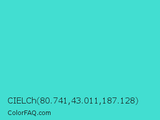 CIELCh 80.741,43.011,187.128 Color is a normal cyan color and the nearest color is Turquoise #40e0d0. Hex code #42ded1 and RGB value is rgb(66,222,209). In RGB color space, this color is composed of 26% red, 87% green, 82% blue, In CMYK color space, this color is composed of 70% cyan, 0% magenta, 6% yellow , 13% black , In HSL color space, this color has a hue angle of 175° , 70% saturation and 56% lightness.