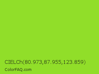 CIELCh 80.973,87.955,123.859 Color is a normal green color and the nearest color is Atlantis #97cd2d. Hex code #91de29 and RGB value is rgb(145,222,41). In RGB color space, this color is composed of 57% red, 87% green, 16% blue, In CMYK color space, this color is composed of 35% cyan, 0% magenta, 82% yellow , 13% black , In HSL color space, this color has a hue angle of 86° , 73% saturation and 52% lightness.