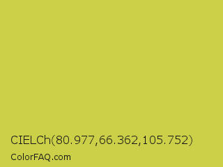 CIELCh 80.977,66.362,105.752 Color is a normal yellow color and the nearest color is Wattle #dcd747. Hex code #ccd049 and RGB value is rgb(204,208,73). In RGB color space, this color is composed of 80% red, 82% green, 29% blue, In CMYK color space, this color is composed of 2% cyan, 0% magenta, 65% yellow , 18% black , In HSL color space, this color has a hue angle of 62° , 59% saturation and 55% lightness.