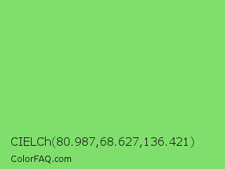 CIELCh 80.987,68.627,136.421 Color is a light green color and the nearest color is Pastel Green #77dd77. Hex code #80df6c and RGB value is rgb(128,223,108). In RGB color space, this color is composed of 50% red, 87% green, 42% blue, In CMYK color space, this color is composed of 43% cyan, 0% magenta, 52% yellow , 13% black , In HSL color space, this color has a hue angle of 110° , 64% saturation and 65% lightness.