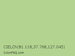 CIELCh 81.118,37.768,127.045 Color is a light green color and the nearest color is Pine Glade #c7cd90. Hex code #b3d490 and RGB value is rgb(179,212,144). In RGB color space, this color is composed of 70% red, 83% green, 56% blue, In CMYK color space, this color is composed of 16% cyan, 0% magenta, 32% yellow , 17% black , In HSL color space, this color has a hue angle of 89° , 44% saturation and 70% lightness.