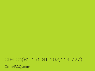 CIELCh 81.151,81.102,114.727 Color is a normal lime color and the nearest color is Key Lime Pie #bfc921. Hex code #b2d82a and RGB value is rgb(178,216,42). In RGB color space, this color is composed of 70% red, 85% green, 16% blue, In CMYK color space, this color is composed of 18% cyan, 0% magenta, 81% yellow , 15% black , In HSL color space, this color has a hue angle of 73° , 69% saturation and 51% lightness.