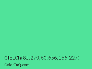 CIELCh 81.279,60.656,156.227 Color is a normal green color and the nearest color is Eucalyptus #44d7a8. Hex code #50e39a and RGB value is rgb(80,227,154). In RGB color space, this color is composed of 31% red, 89% green, 60% blue, In CMYK color space, this color is composed of 65% cyan, 0% magenta, 32% yellow , 11% black , In HSL color space, this color has a hue angle of 150° , 72% saturation and 60% lightness.