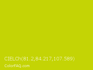 CIELCh 81.2,84.217,107.589 Color is a normal yellow color and the nearest color is Rio Grande #bbd009. Hex code #c4d405 and RGB value is rgb(196,212,5). In RGB color space, this color is composed of 77% red, 83% green, 2% blue, In CMYK color space, this color is composed of 8% cyan, 0% magenta, 98% yellow , 17% black , In HSL color space, this color has a hue angle of 65° , 95% saturation and 43% lightness.