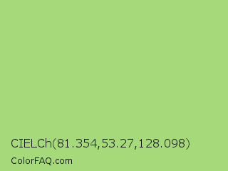 CIELCh 81.354,53.27,128.098 Color is a light green color and the nearest color is Feijoa #9fdd8c. Hex code #a6d979 and RGB value is rgb(166,217,121). In RGB color space, this color is composed of 65% red, 85% green, 47% blue, In CMYK color space, this color is composed of 24% cyan, 0% magenta, 44% yellow , 15% black , In HSL color space, this color has a hue angle of 92° , 56% saturation and 66% lightness.