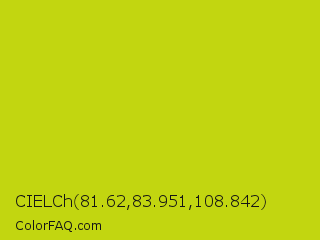 CIELCh 81.62,83.951,108.842 Color is a normal yellow color and the nearest color is Fuego #bede0d. Hex code #c2d610 and RGB value is rgb(194,214,16). In RGB color space, this color is composed of 76% red, 84% green, 6% blue, In CMYK color space, this color is composed of 9% cyan, 0% magenta, 93% yellow , 16% black , In HSL color space, this color has a hue angle of 66° , 86% saturation and 45% lightness.