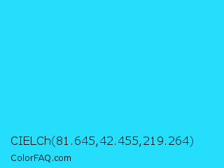 CIELCh 81.645,42.455,219.264 Color is a normal cyan color and the nearest color is Loeen #15f2fd. Hex code #24defc and RGB value is rgb(36,222,252). In RGB color space, this color is composed of 14% red, 87% green, 99% blue, In CMYK color space, this color is composed of 86% cyan, 12% magenta, 0% yellow , 1% black , In HSL color space, this color has a hue angle of 188° , 97% saturation and 56% lightness.